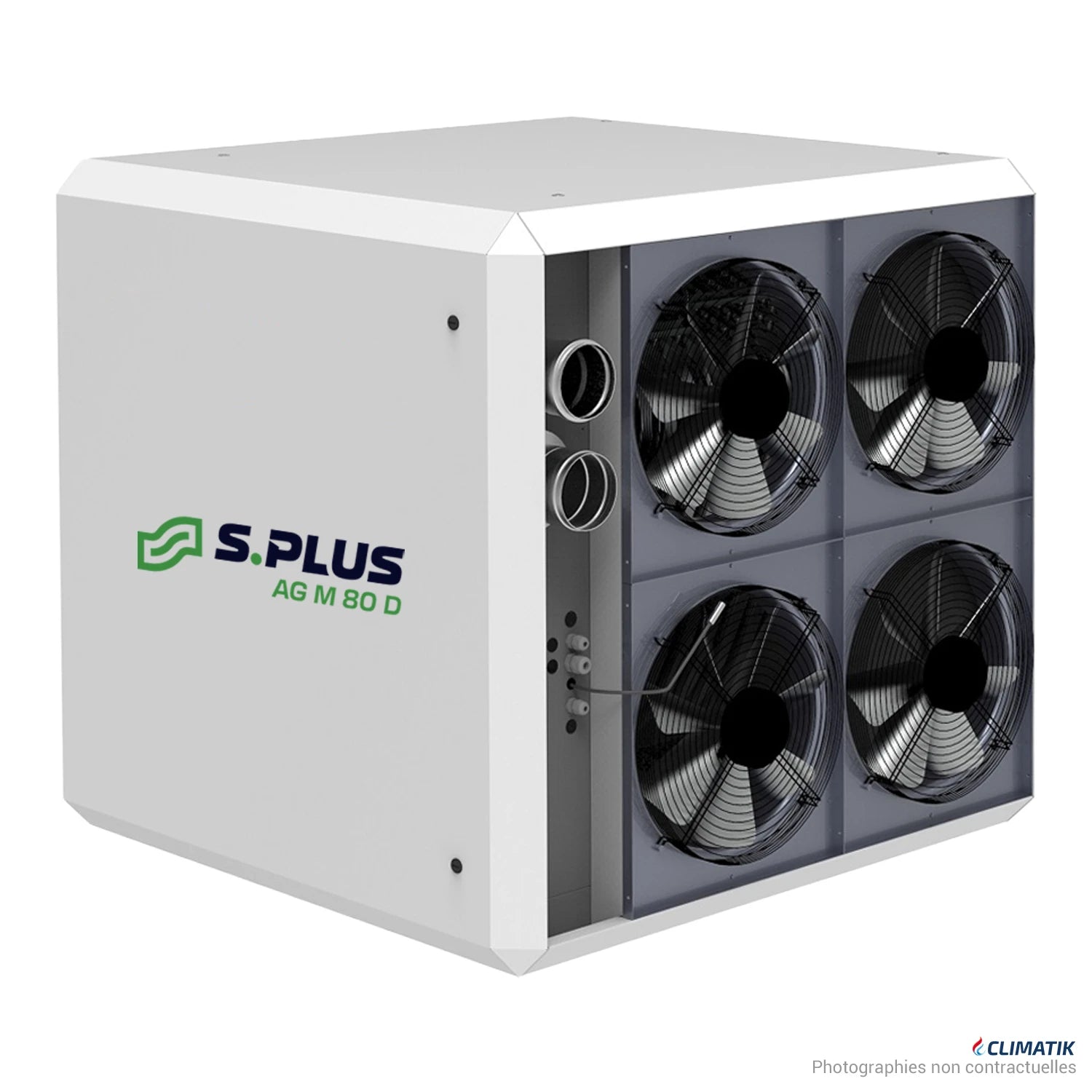 Compact et flexible, l’AG M 80 D peut être installé au mur ou suspendu, avec un soufflage orientable horizontal ou vertical.